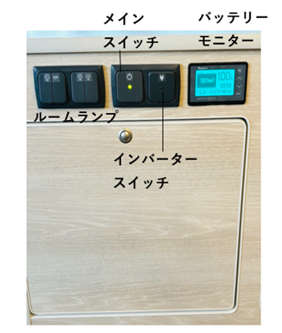 作動しない? メインスイッチをONにしても電気設備が作動しない場合は下記をご確認ください。 ①バッテリーチェッカーでサブバッテリーの電圧を調べます。電圧が下がっている場合はサブバッテリーを充電してください。②サブバッテリー(+)端子部のヒューズが切れていないかご確認ください。 ③各電気設備のヒューズが切れていないかご確認ください。