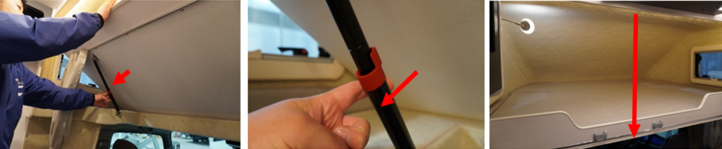 ・ベッドを取り外し戻す際には、しっかり固定されているか確認してください。