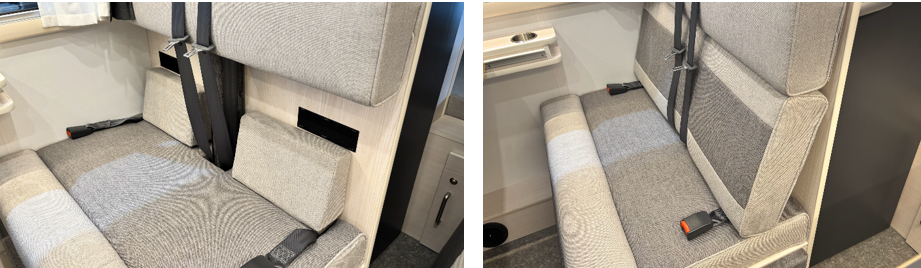 シートベルトはセカンドシートに2点式、サードシートに3点式が装備されています。