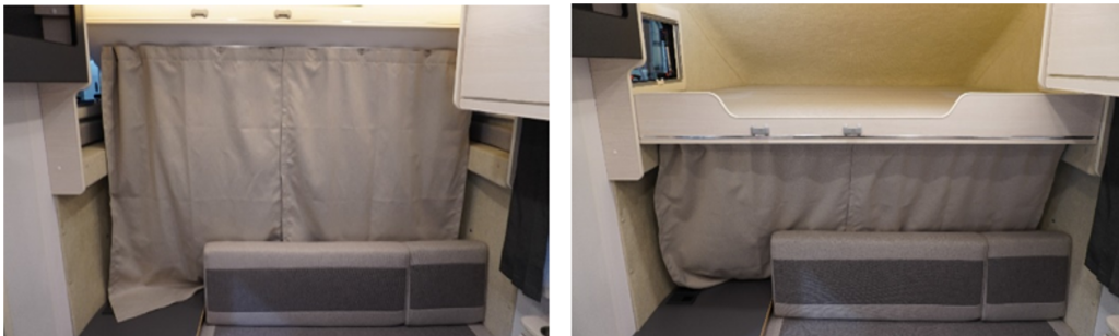 ベッドサイズは上下ともに幅1820㎜×奥行690~820㎜です。ベッドは取外し可能です。