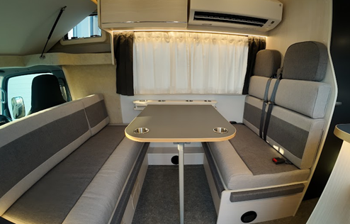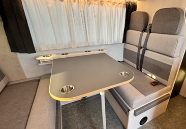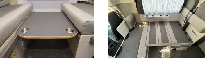 ・ダイネットベッド展開時にテーブルをセカンドシートとサードシートの間に差込み、
