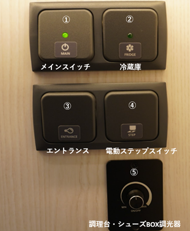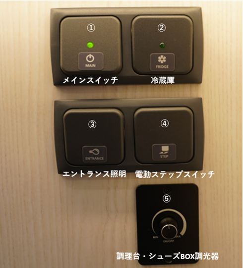 エントランスドアを開けた状態で電動ステップを格納したい場合は、エントランスドアを入って右側の電動ステップスイッチを押してください。