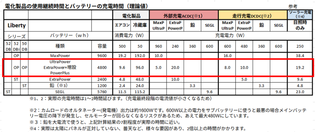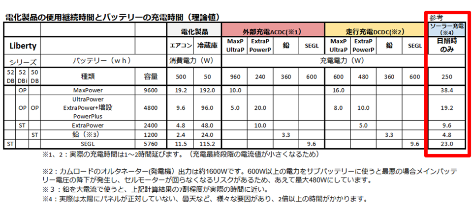 充電時間ついては、下記の表を参考にしてください。(ソーラーパネル250Wの場合)