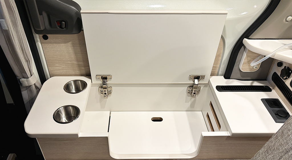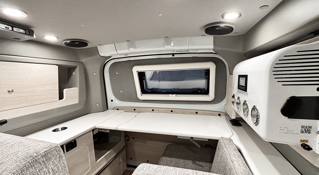 流し台 (蓋付シンク、ポータブルウォータータップ)、リアスピーカー(埋込式)、清水・排水タンク 各12ℓ