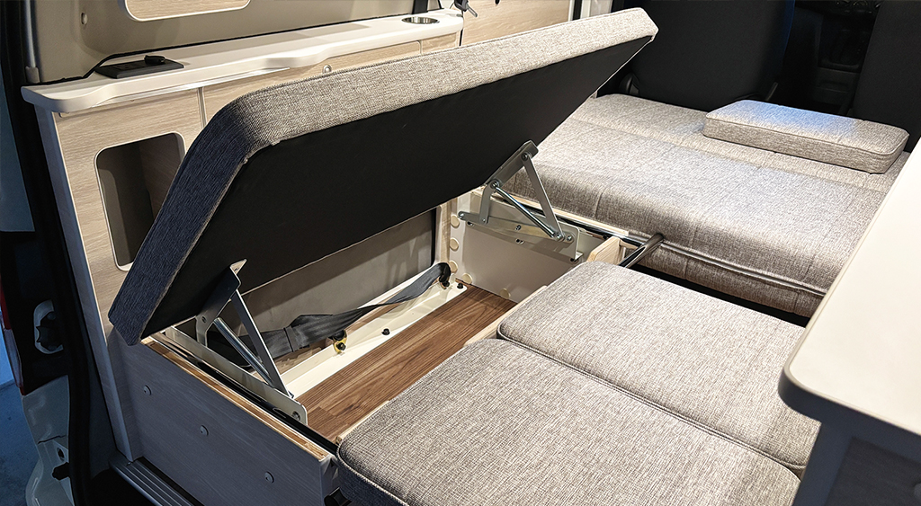 セカンドシートをコンパクト化してコンパクト冷蔵庫や電子レンジが置ける