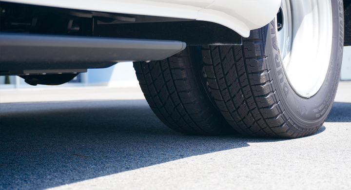 リアタイヤは、バースト対策でダブルタイヤに