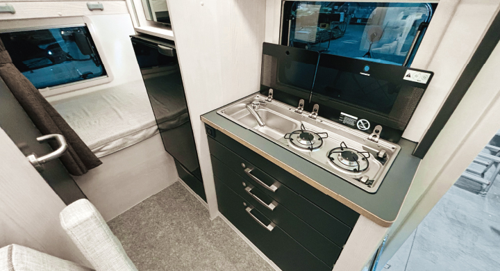 *RE i のステンレスシンク・2バーナーコンロは、