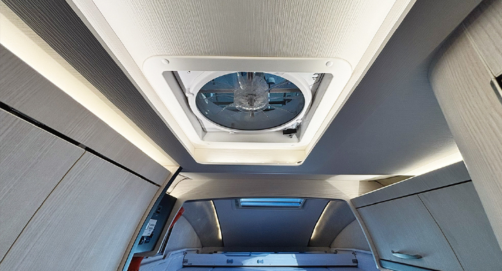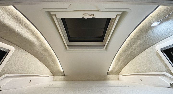 バンクベッド上のルーフウィンドウ。空が見える開放感、換気機能もあります。