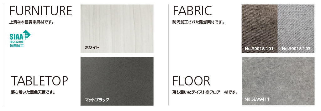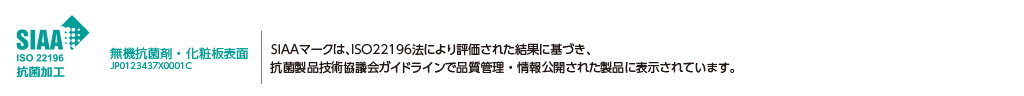家具の表面材に、一般社団法人抗菌製品技術協議会認定のSIAA抗菌マークマークを取得しました。表面を清潔に保ちます。