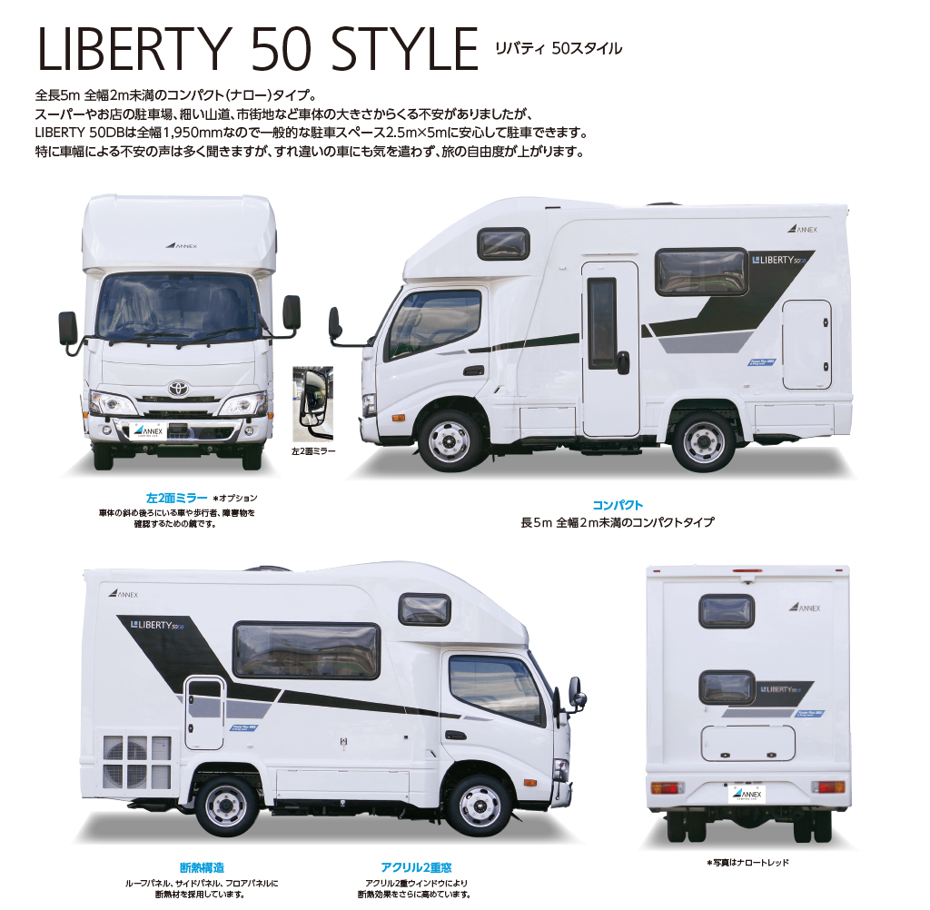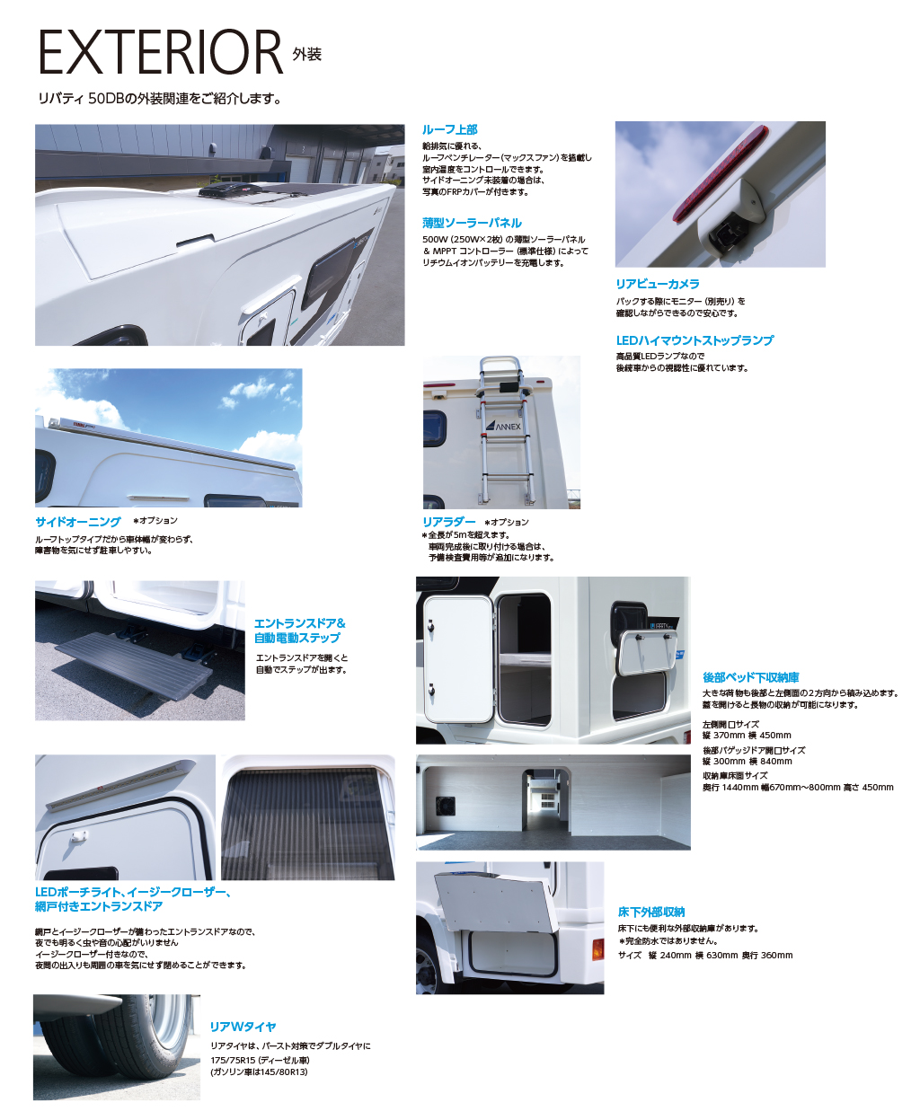 これらの装備により、「Liberty 50DB」はさらに安心・快適なキャンピングカーとして生まれ変わりました。