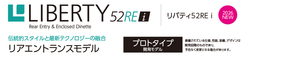 LIBERTY 52RE i 投稿日: 2025-12-26 (2025-12-26) 投稿者: %s 管理者アネックス カムロードベース キャブコン|リバティ 52RE i ジャパンキャンピングカーショー2026にてお披露目展示します。 2026NEW【LIBERTY52REi】リバティ52シリーズにリアエントランスモデル登場!プロトタイプモデルをジャパンキャンピングカーショー2026に出展予定!