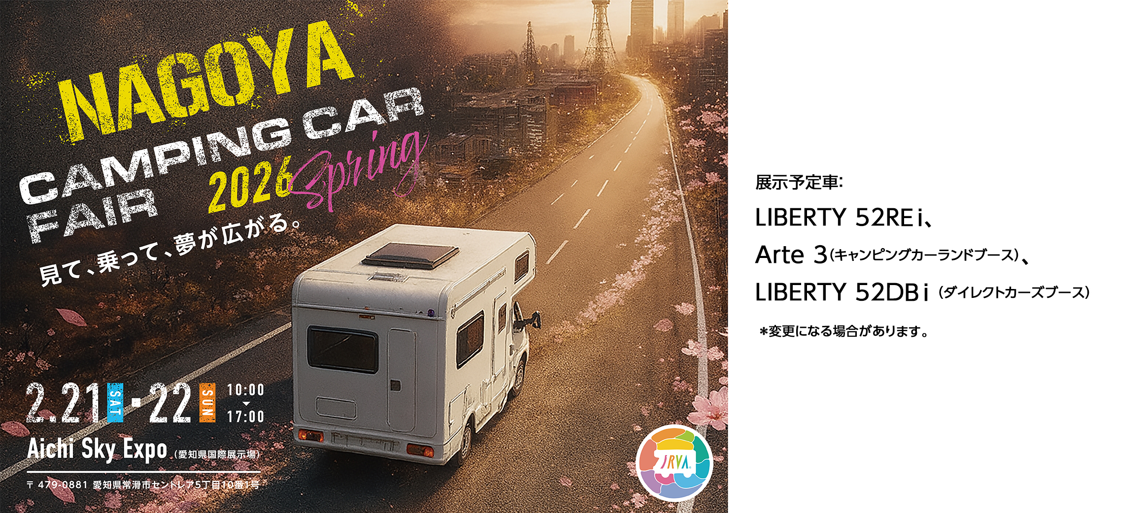 当社では一般社団法人日本RV協会の要請を受けてキャンピングカー「Liberty」を2台提供しました。